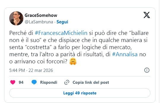 Dietro le critiche si intravede un tema più profondo e attuale. Francesca Michielin ha raccontato più volte, con grande sincerità, il peso delle aspettative e quella sensazione persistente di non sentirsi mai abbastanza, una condizione che molte donne nel mondo dello spettacolo conoscono bene. Anche in questa occasione, il dibattito online mette in evidenza quanto ogni scelta diversa venga osservata e giudicata con estrema rigidità.