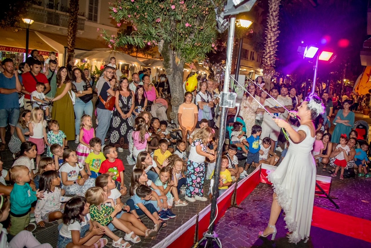 Nella pineta presso il circolo, pony e cavalli erano a disposizione dei bambini, mentre la Lega del cane ha organizzato attività di adozione, giochi e premi per gli animali. I bambini hanno avuto l’opportunità di diventare pompieri per un giorno nella Pompieropoli in piazza Giorgini, curata dall’associazione nazionale Vigili del fuoco. Sono stati inoltre allestiti un circuito di veicoli elettrici, go-kart, prove di sicurezza stradale con la Croce Rossa Italiana, dottor clown e truccabimbi; nelle vicinanze, un food truck ha offerto dolciumi e zucchero filato. In piazza Pazienza, l’artista di strada Nanette ha incantato il pubblico, mentre le mascotte ispirate ai personaggi di Walt Disney hanno percorso le vie del centro per tutta la serata. Innumerevoli persone si sono messe in fila presso la postazione di Radioazzurra, che ha proposto la divertente “ruota della fortuna di Caffè Mokambo”, assegnando più di settecento premi ai partecipanti.